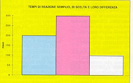 when we reach a traffic light and have to decide whether to stop or go on. If the simple reaction time is subtracted from the choice reaction time, we obtain a value very similar to the central discrimination time (see graphic in this paragraph). Normally, a young subject in good health has a simple reaction time of 200 thousandths of a second (msec) and a choice reaction time of 300. The difference is therefore 100 msec. This is an example of measuring a mental operation, independently of perception and motor response. Experience tells us that training improves only the choice reaction time, precisely because it can lower those 100 central msec.