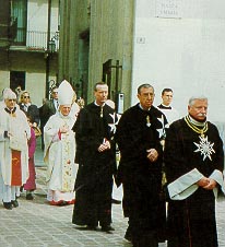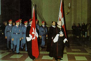 ASSISI, Italy. The Order's flags at the entry of the Basilica of the Angels during the Marian Pilgrimage to the Madonna of Fileremo, the Order's Patron Saint, on 8 September.