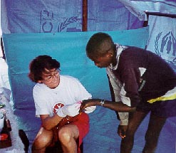 Zaire. A doctor of the Order's German Relief Group (MHD), treating a Rwandese child in a refugee camp set up by the Order in cooperation with the United Nations High Commissioner for Refugees.