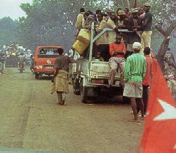 Rwanda. The flag on one of the Order's relief vehicles follows an interminable column of Rwandese refugees, ready to give support and assistance with doctors and nurses from the ECOM's Relief Groups (Emergency Corps of the Order of Malta), set up four years ago in the sphere of the Strategies Programme.