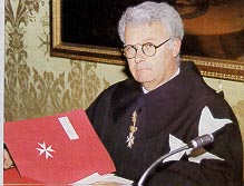 Born in Innsbruck, Austria, 23 January 1937, elected by the Chapter General. Admitted to the Sovereign Order in 1970 as Knight of Grace and Devotion of the Grand Priory of Austria, he took his first simple vows in 1984 and his solemn profession in 1988.